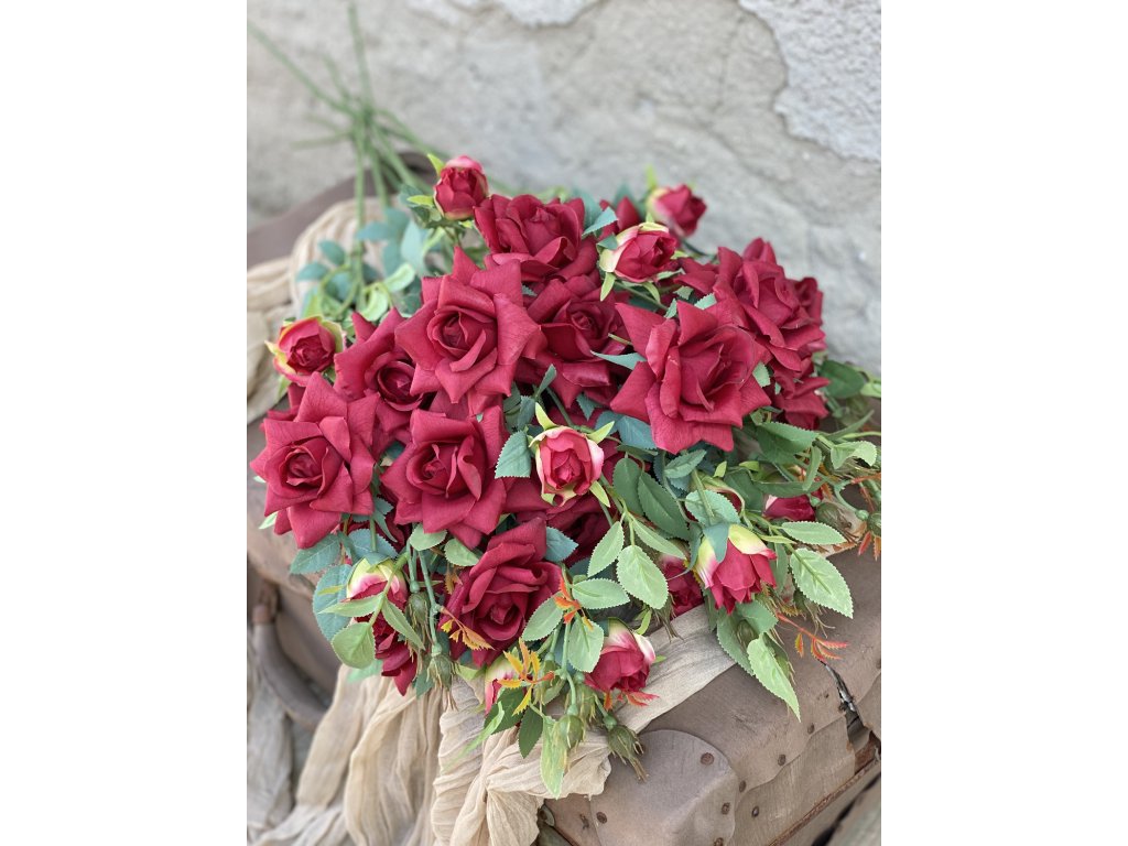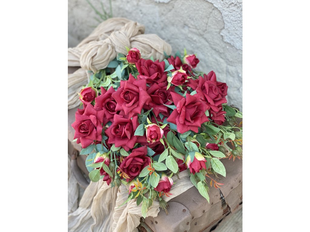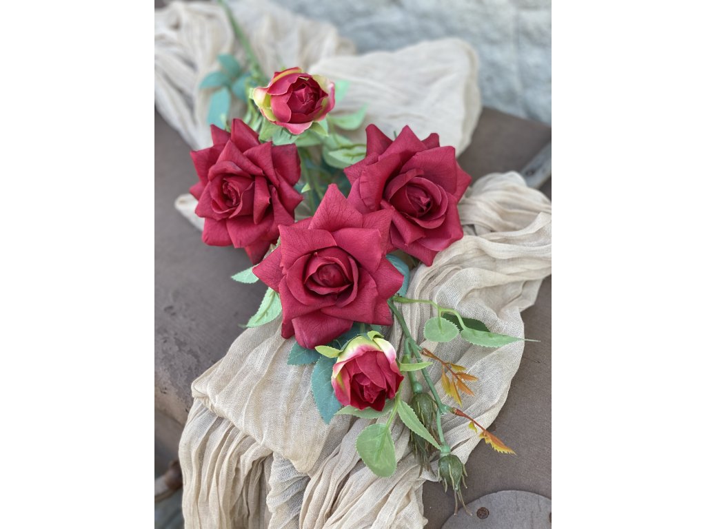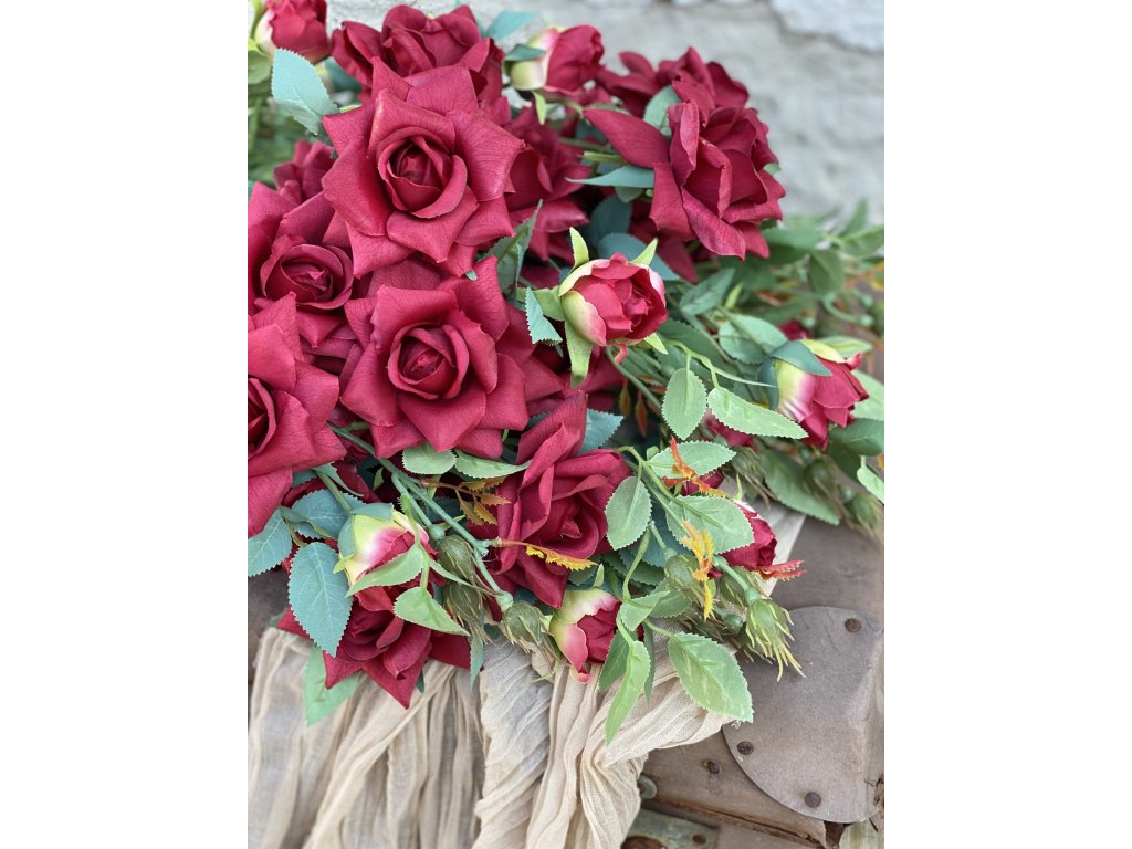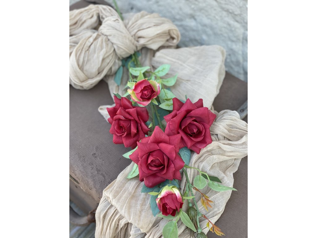 Farba: bordová, 3 kvety + 2 púčiky (hlava má 10 cm), celá dĺžka je 96 cm.